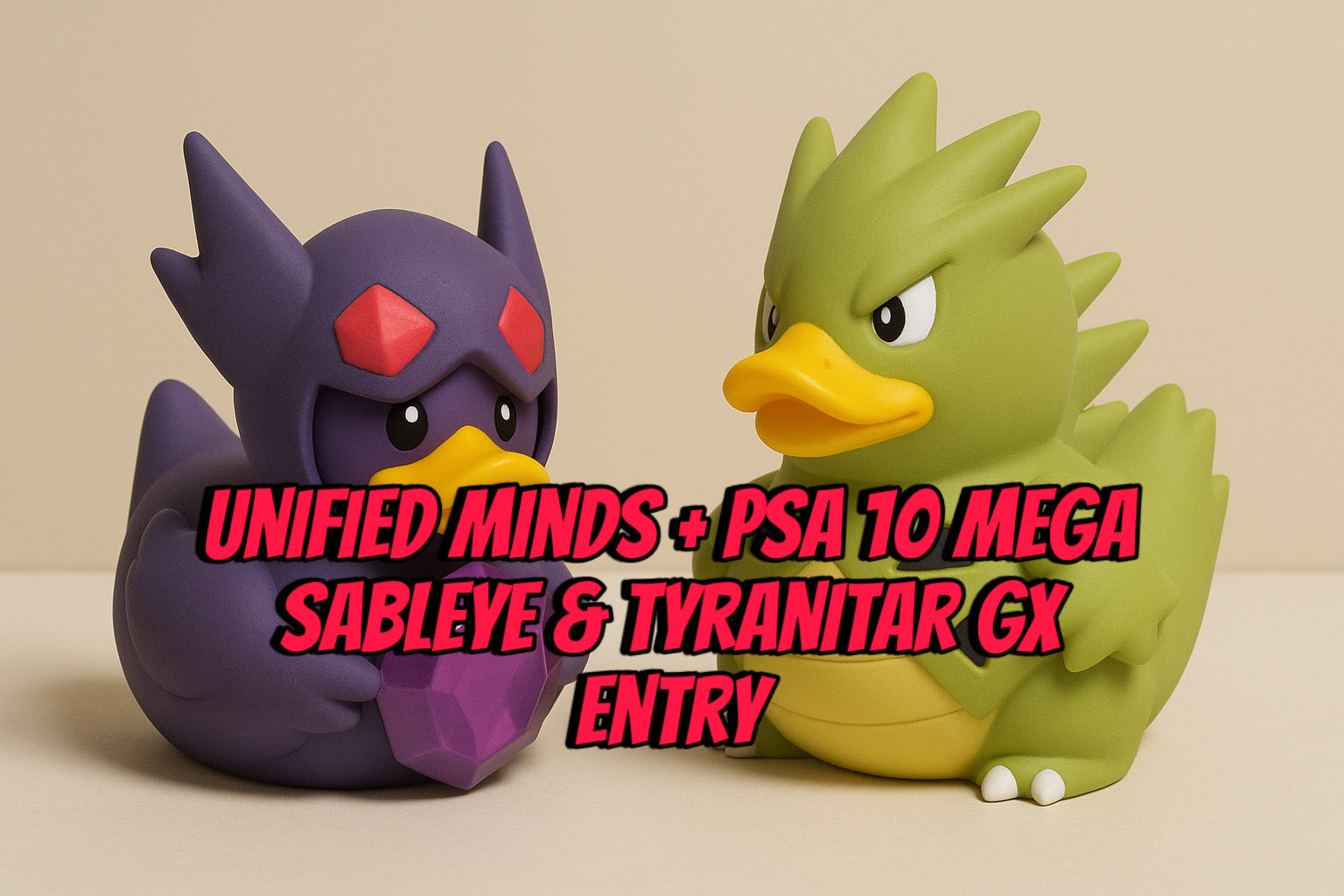 Get ready to race it out for a shot at something huge — the 1st place duck wins 1x Unified Minds Booster Pack, and that pack also comes with 1 entry into the PSA 10 Mega Sableye & Tyranitar GX slab giveaway at the end of the box break!